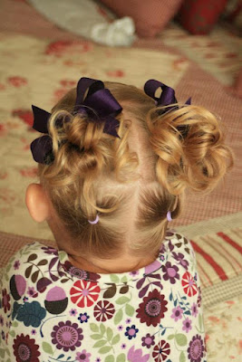 First, part the hair how you normally would for two ponytails. Then divide each side into thirds. I pulled the top third into a ponytail and the bottom third into a ponytail.
